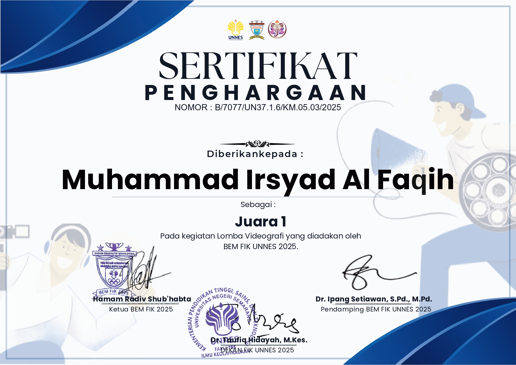 "Kumpulan apresiasi dan tonggak sejarah yang menandai perjalanan profesional saya. Bukti nyata atas sinergi antara visi kreatif, disiplin kerja, dan penguasaan teknologi dalam melahirkan karya visual yang bermakna."
